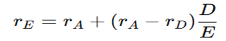 - 자기 자본 비용(rE)은 부채 대비 자기 자본 비율(D/E)이 증가할수록 상승