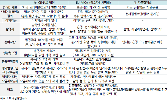주요국 스테이블코인 규제 비교