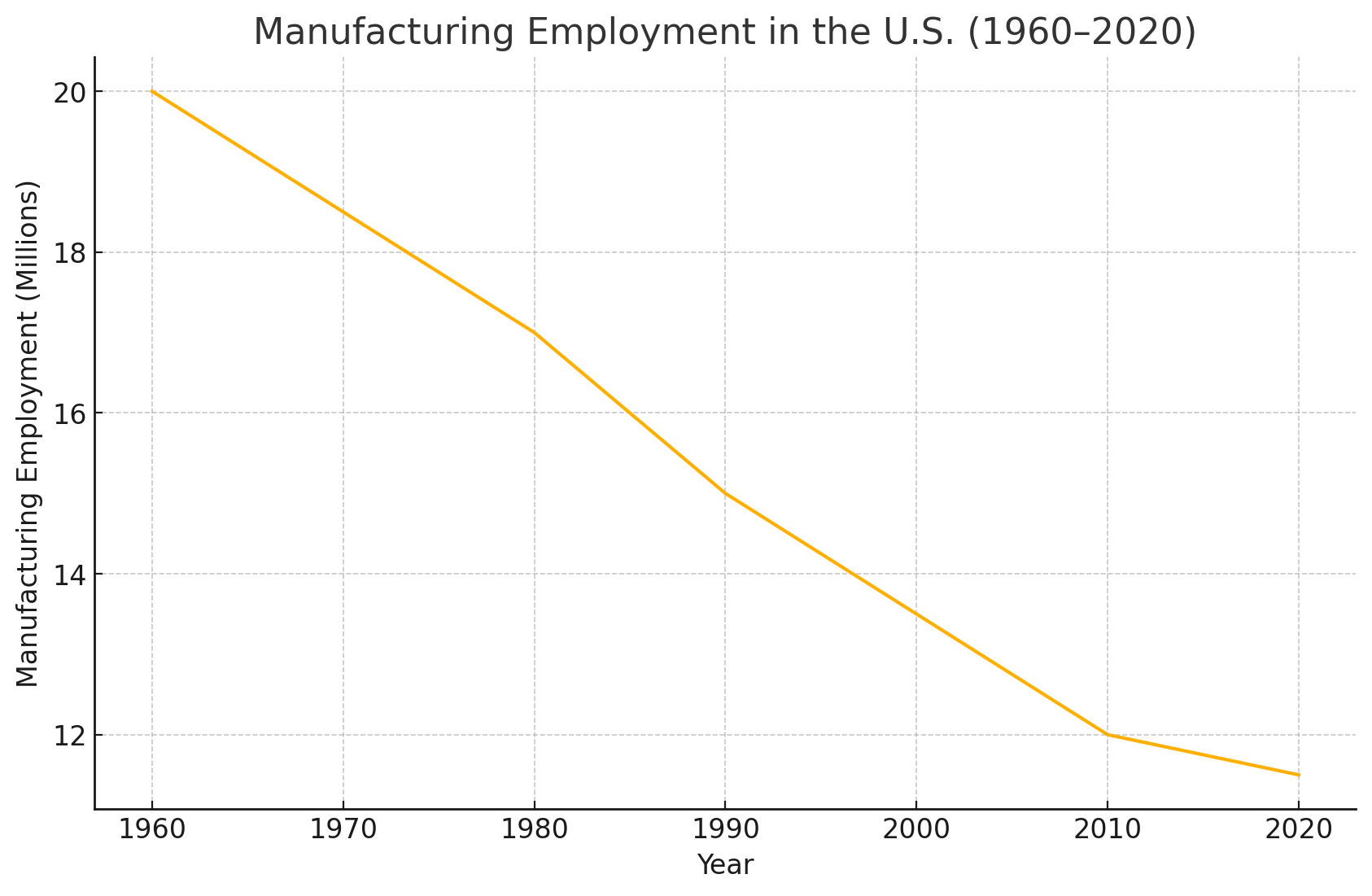 미국 제조업 고용 추이 (1960–2020)