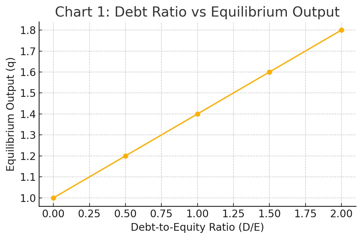 위에서 볼 수 있듯, 부채비율이 높아질수록 기업의 산출량이 증가하며, 이는 제한책임효과가 실제 시장에서 과잉 생산을 촉진함을 실증적으로 시사합니다.