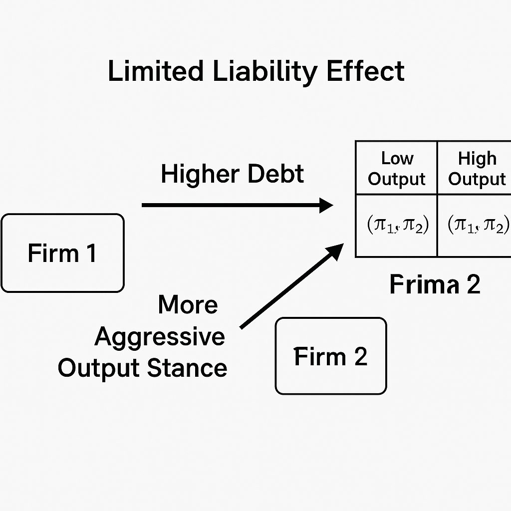 - 주주는 상대방의 파산 확률을 높이기 위해 생산량을 조정할 유인이 생기며, 이는 은닉적 게임(commitment) 관점에서 금융구조가 전략 수단이 됨을 보여줍니다.